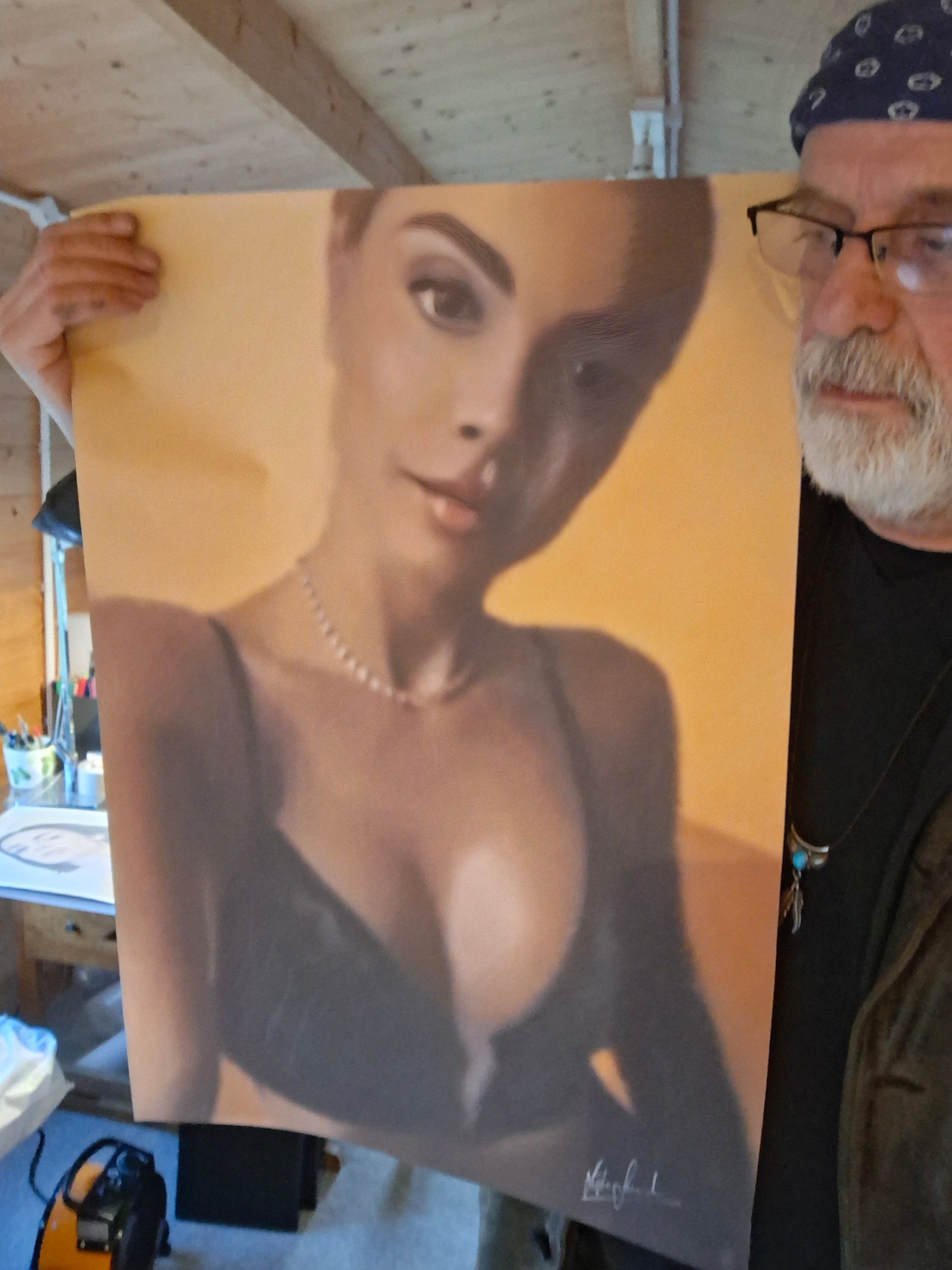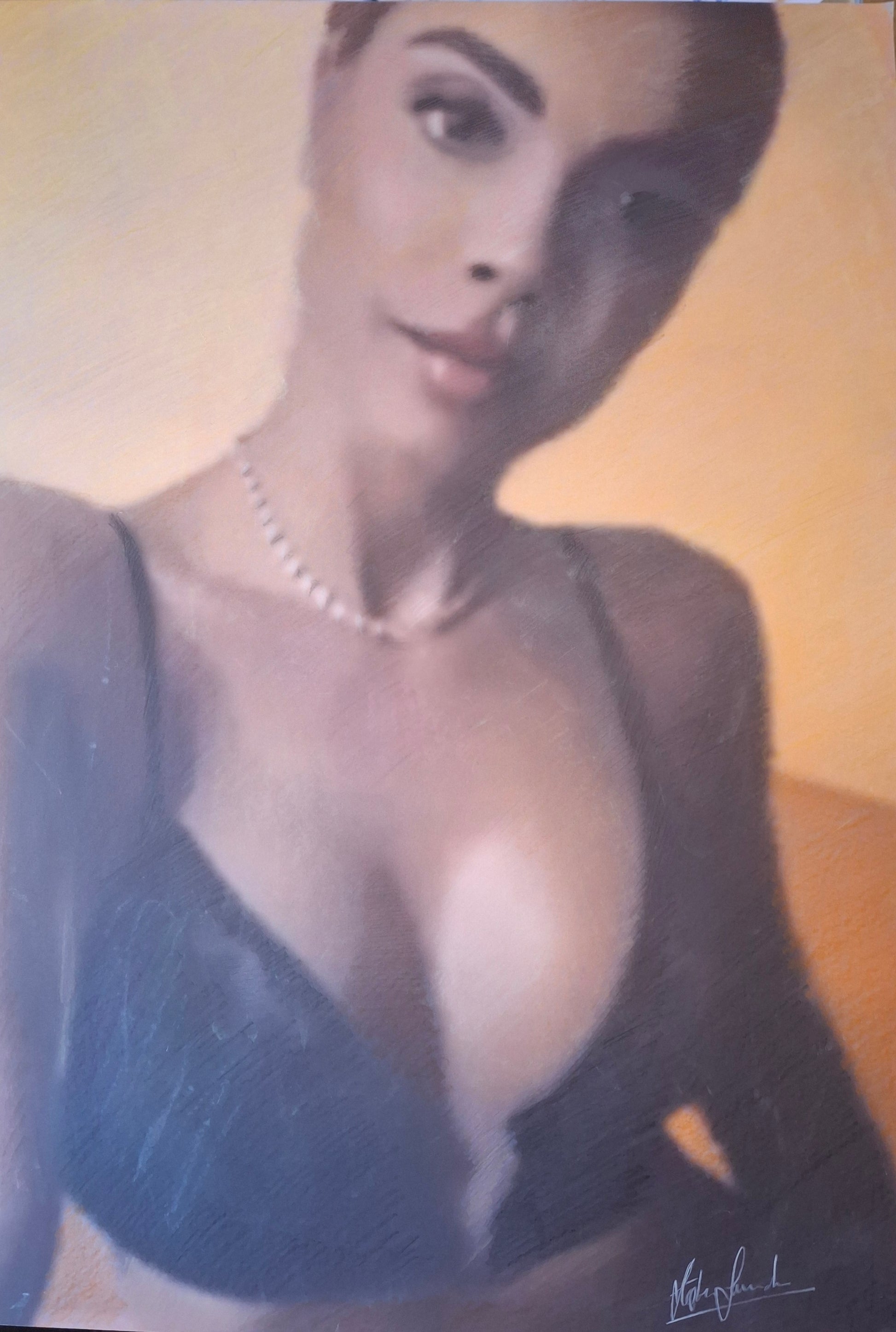Portrait of Anissa, an example of a stylised colour drawing should you want something similar. This one is in the possession of the subject.
