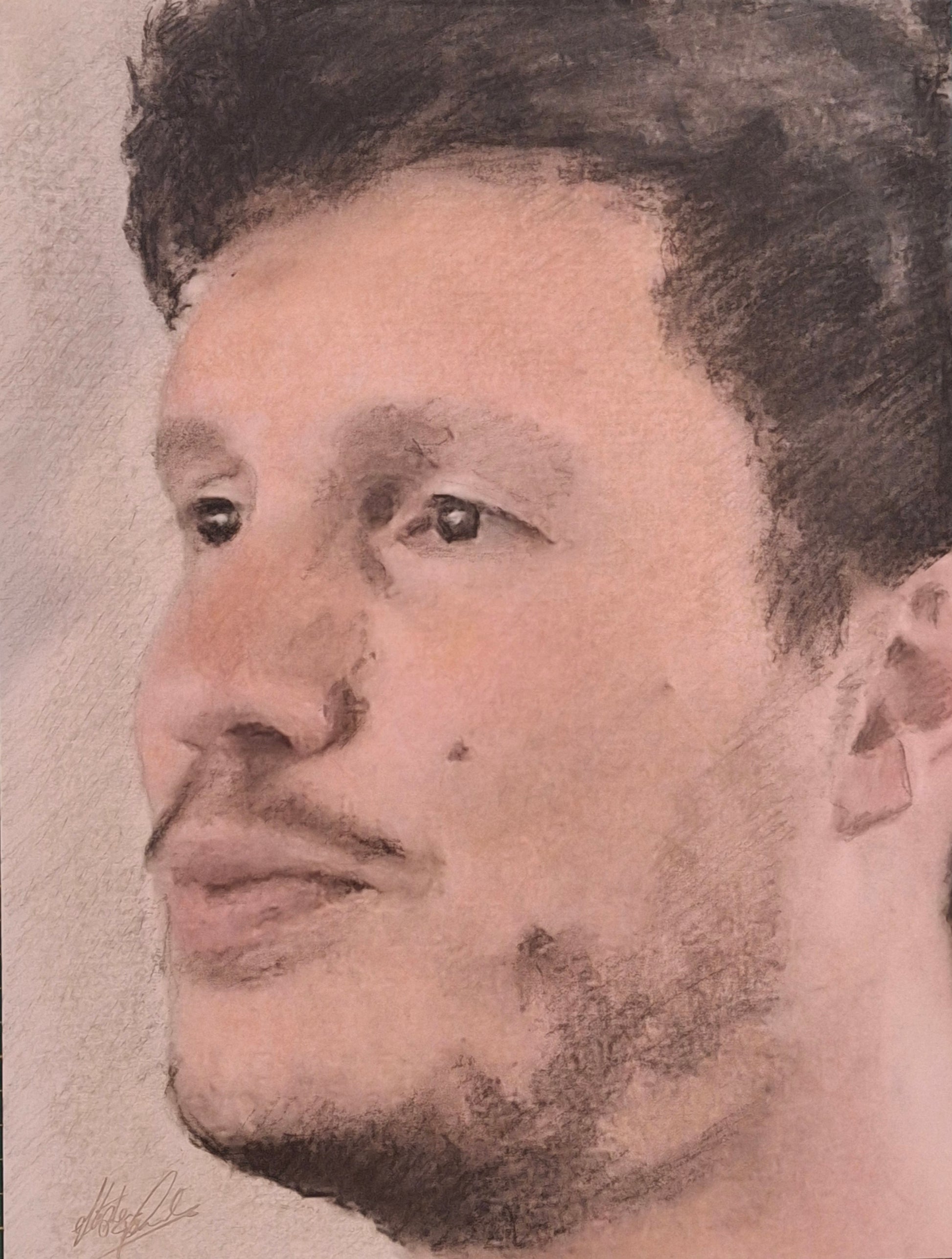 A3 portrait in charcoal, chalk, dilute ink and pencils.
