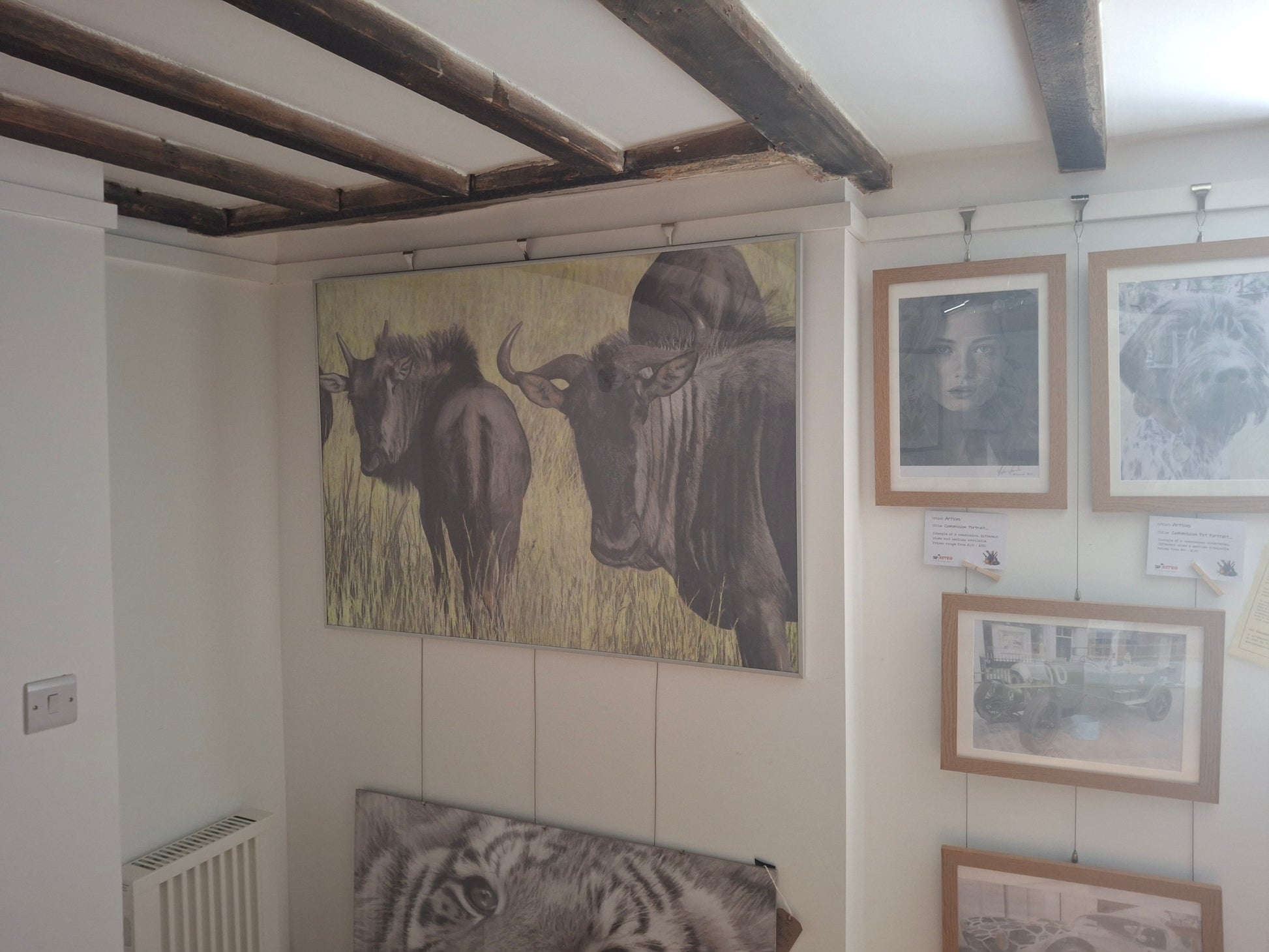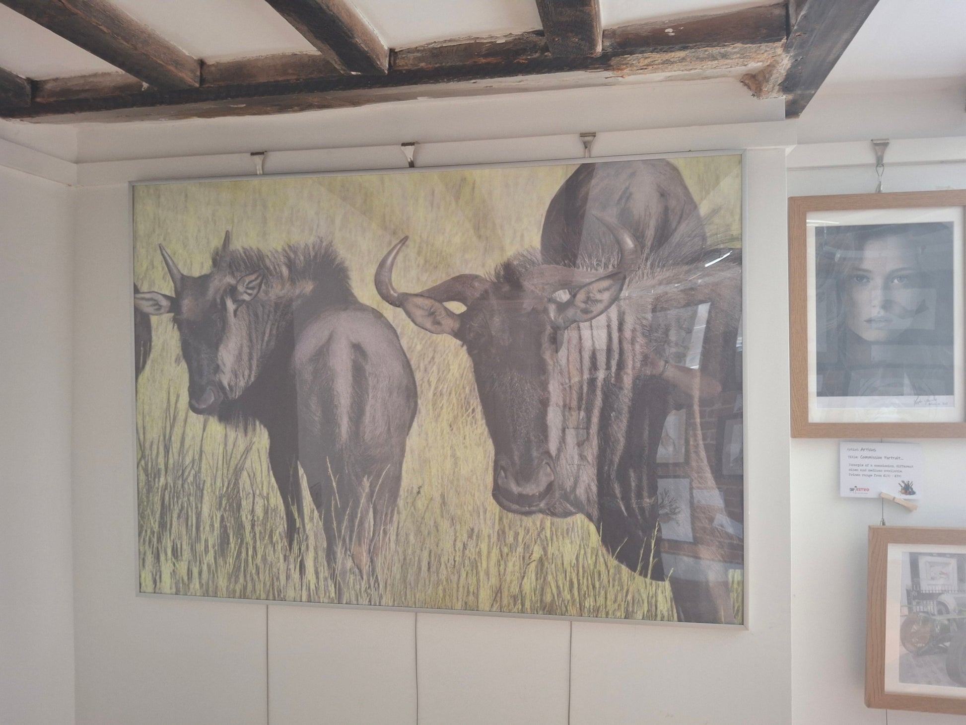 Large (A0) landscape portrait of a pair of gnus (wildebeest). The image shows a portion of the wider picture. Part of a series of large wildlife drawings. Signed original.