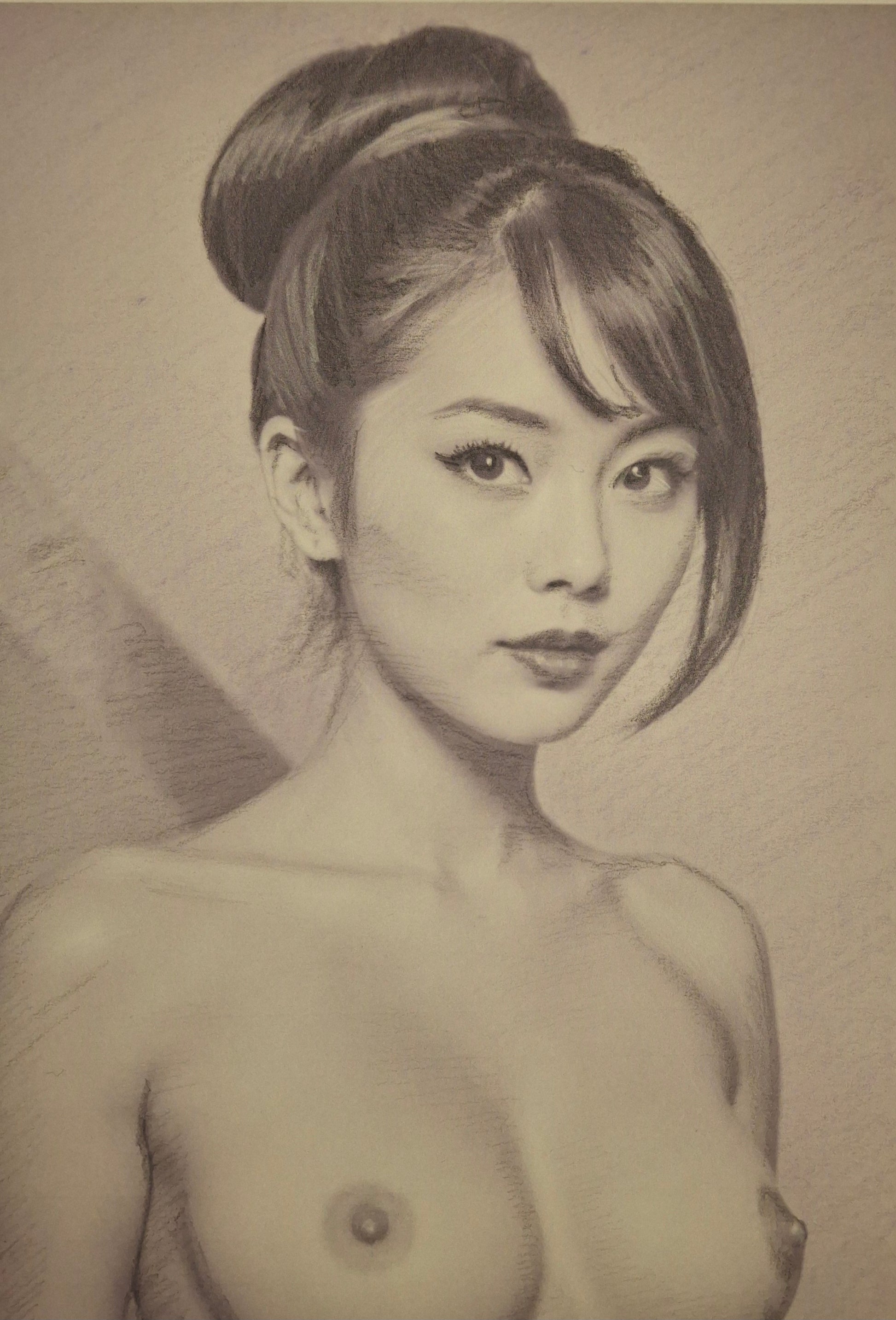 A4 soft graphite pencil portrait of a Japanese woman on paper