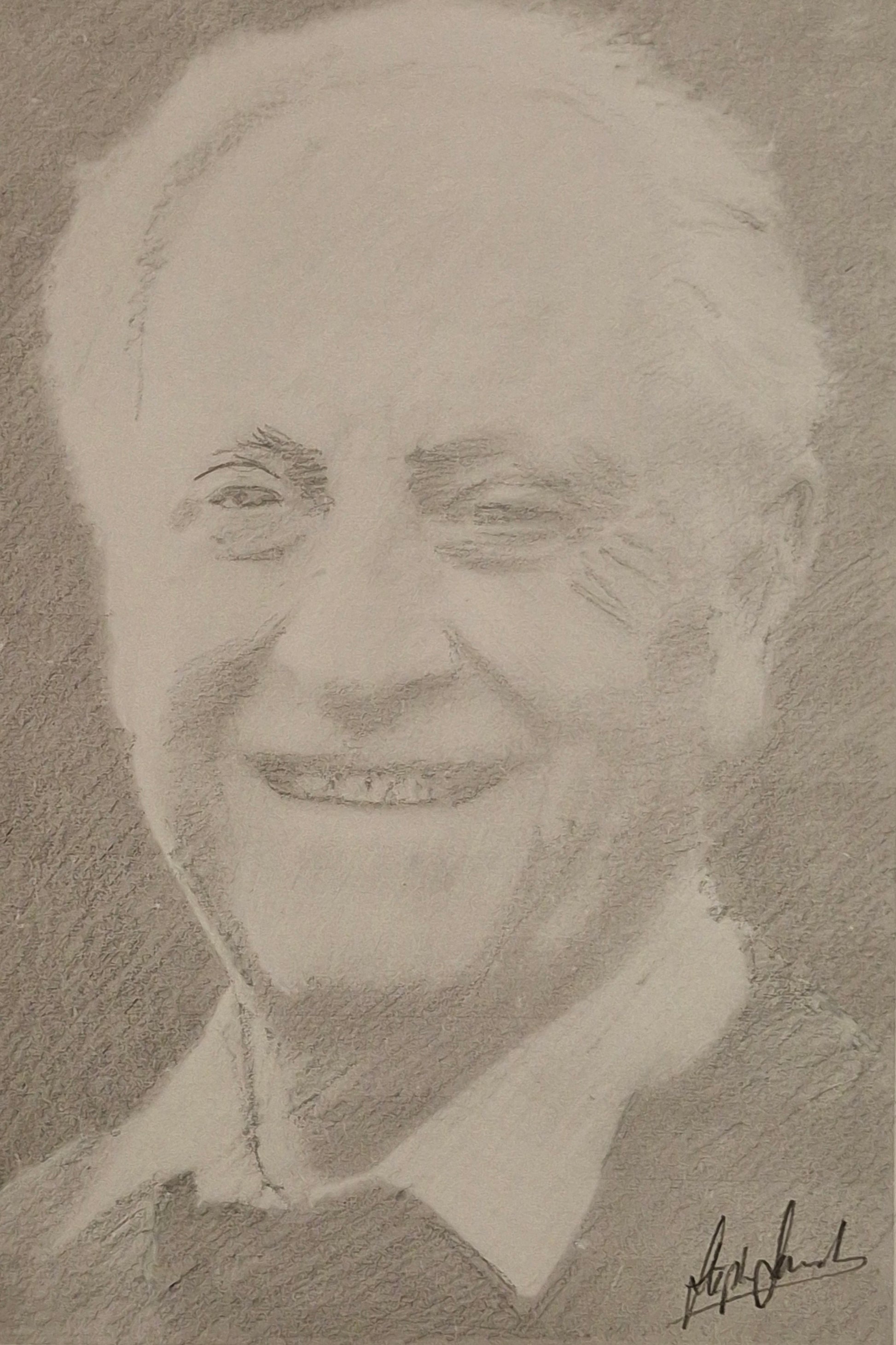 The study is of the artist’s father, John Saunders, 1924 to 2009. Not for sale. This is an example of a small, inexpensive portrait you might consider commissioning for yourself.