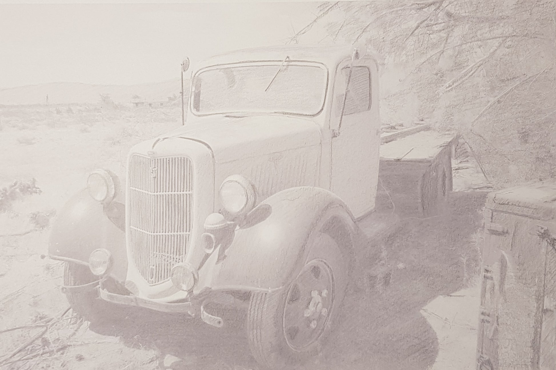 This is a graphite pencil and chalk drawing from a photograph, A4 size, on paper. (265 mm x 175 mm)