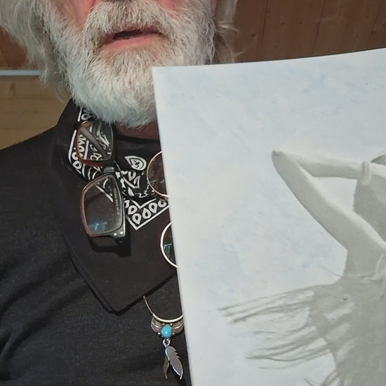 A3 soft graphite, dilute ink and chalk on light card. This is a monochrome image with a light blue background.